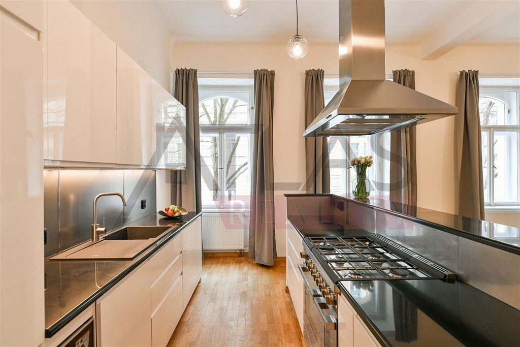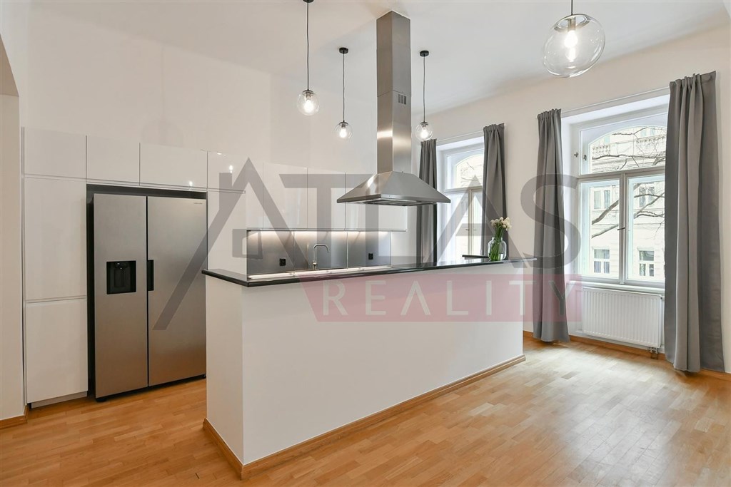 Rental of a partially furnished, newly renovated 3+kk apartment, 118 m2, duplex covering ground and first floor of a tenement building. Large living room, new fully equipped kitchen with dining area (gas stove, electric oven, dishwasher, washing machine, dryer), 2 bedrooms, 2 bathrooms (bathtub, shower, toilet), separate toilet. Balcony. Satellite, telephone. Parquet flooring. Home video intercom. Large parking area behind the building. Possibility to arrange for a parking permit which allows parking in designated areas for residents of Prague 2. Possibility of renting a garage for 6,500 CZK. Rent 55,000 CZK, deposit 90,000 CZK, building charges 4,500 CZK, + utilities (transferred to the tenant). NO PETS. City center, close to park, very good transport accessibility.For more details and managing visit call English speaking agent Jan phone (+420) 775 609 626. Available from January 2026.