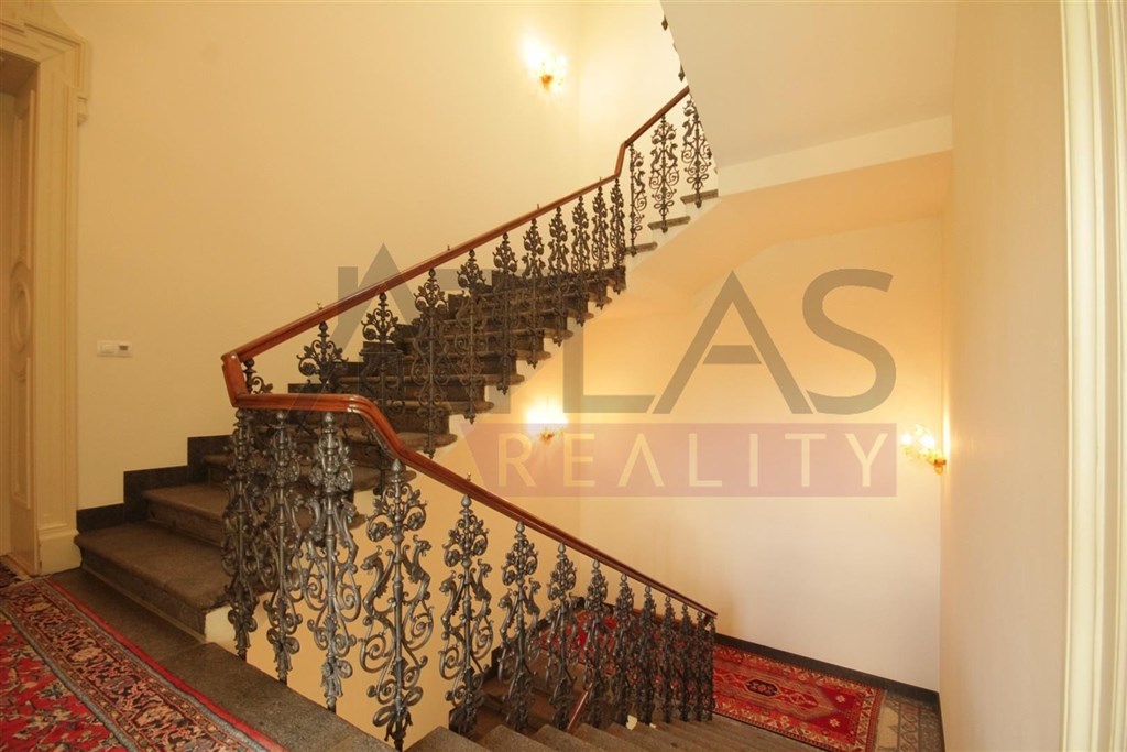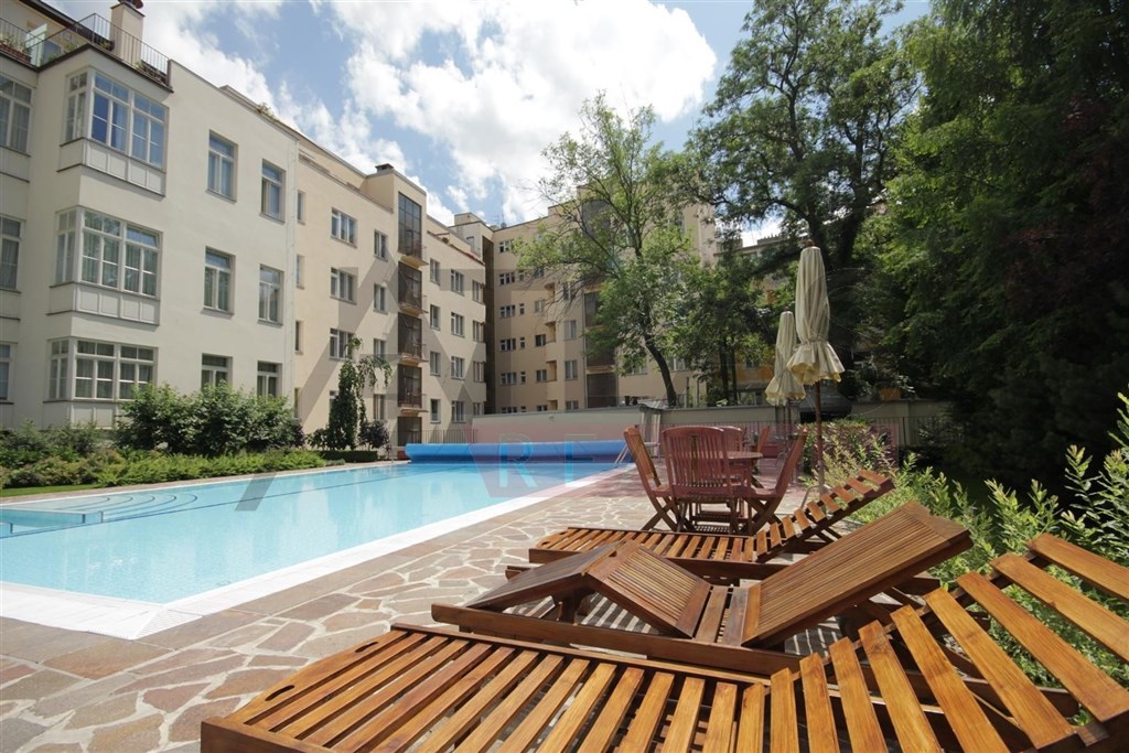 Rent of fully furnished two-bedroom apartment (92 sqm) on second floor (with lift) in a prestigious Classical Secession apartment building with high ceilings and original decorations after complete refurbishment done in 2006. Balcony 6 sqm. House is located in a residential area of the historical center of Prague, only 200m from Riegrovy Sady Park, 300m from subway station Green line "A" and Red line "C" Muzeum and shopping and entertainment center of Prague. Apartment is fully furnished with beautiful pseudo-antique Italian furniture. Apartment consists of living room (45 sqm), with fully-fitted kitchenette (with fridge, freezer, dishwasher, gas stove and vent hood), two bedrooms (16 sqm and 16 sqm), bathroom (with jacuzzi, WC and bidet), balcony. Apartment has phone line, high-speed Internet, TV set, satellite, parquet and tiled flooring, and high quality materials were used during recent reconstruction. In the house are underground garages, a lift, and a large swimming pool (8 x 11 m with depth 1,2 m( with water massage corner, surrounded by terrace and greenery. In house is a camera system,a security service concierge and a house keeper. Non-stop security and using the swimming pool are included in the price. For more details and to manage a visit, call English speaking agent Jan, phone (+420) 775 609 626.